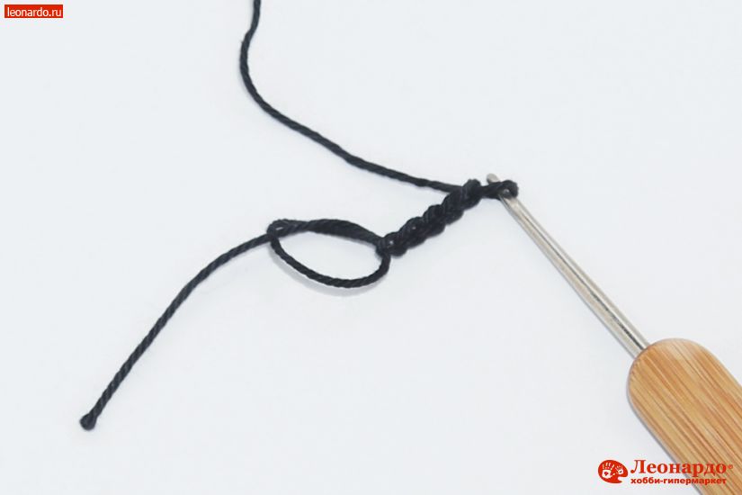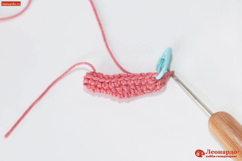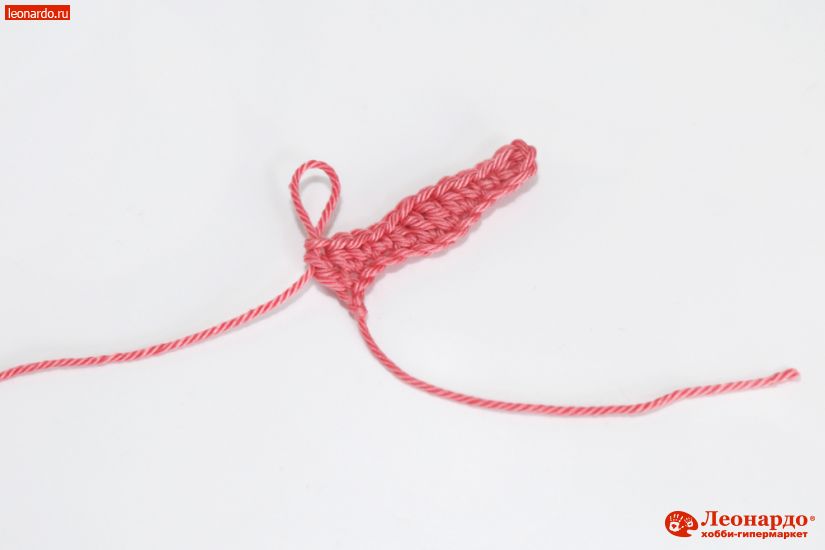 2. Далее в обратную сторону по цепочке из воздушных петель вяжем: ССН, ПССН, 2СБН, ПССН, 2ССН, ПССН, 2СБН, ПССН, ССН (24).