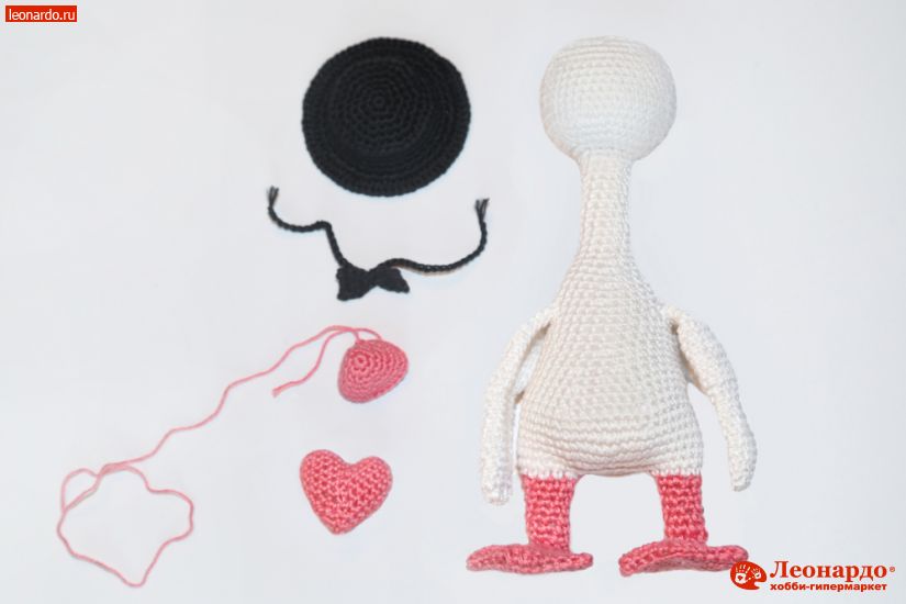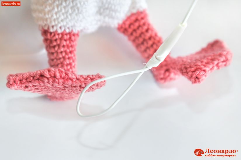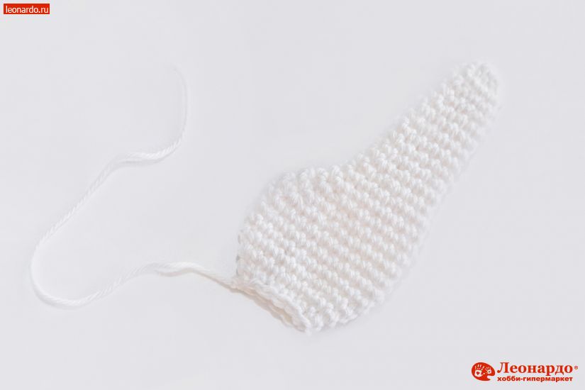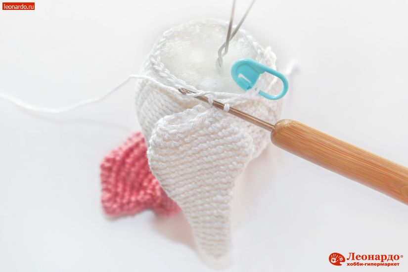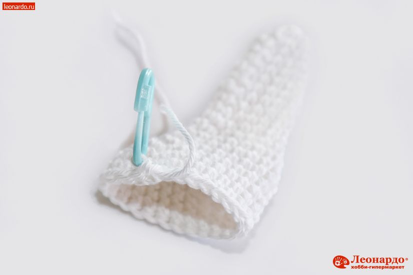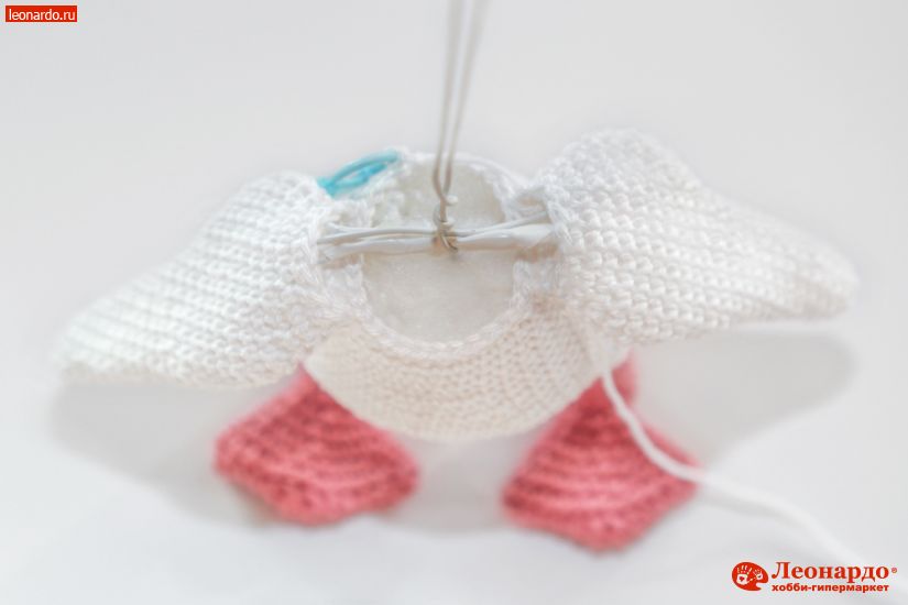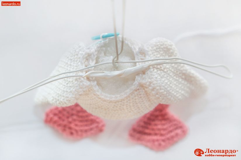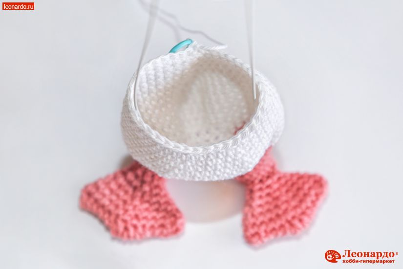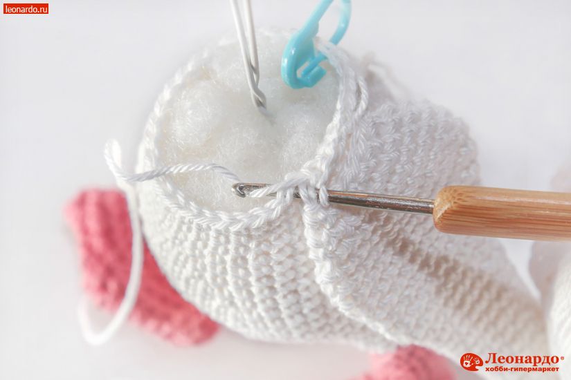9. На второй лапке после 18-го ряда провязываем 3СБН, меняем нить на белую (в конце второго СБН) и начинаем вязать тело.
