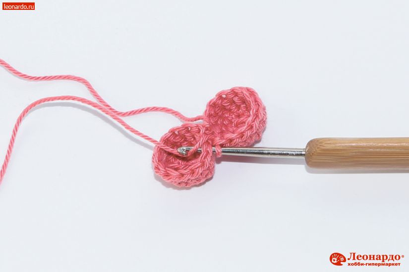 Вяжем от кольца амигуруми (4ВП, СС в третью ВП, 2 СНН2 в кольцо амигуруми; 1ВП, СС в ССН2, 3ВП, СС в кольцо амигуруми) х 2 раза.