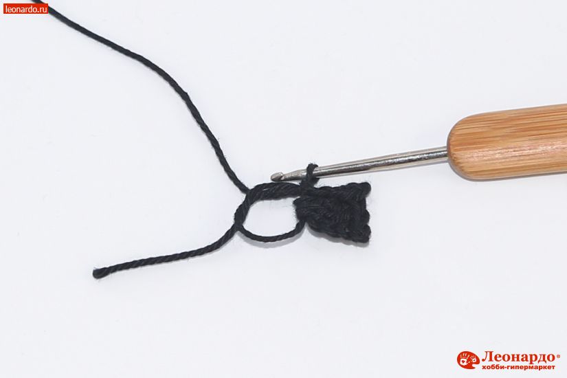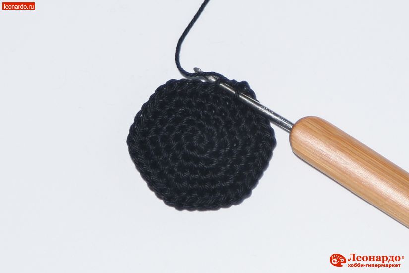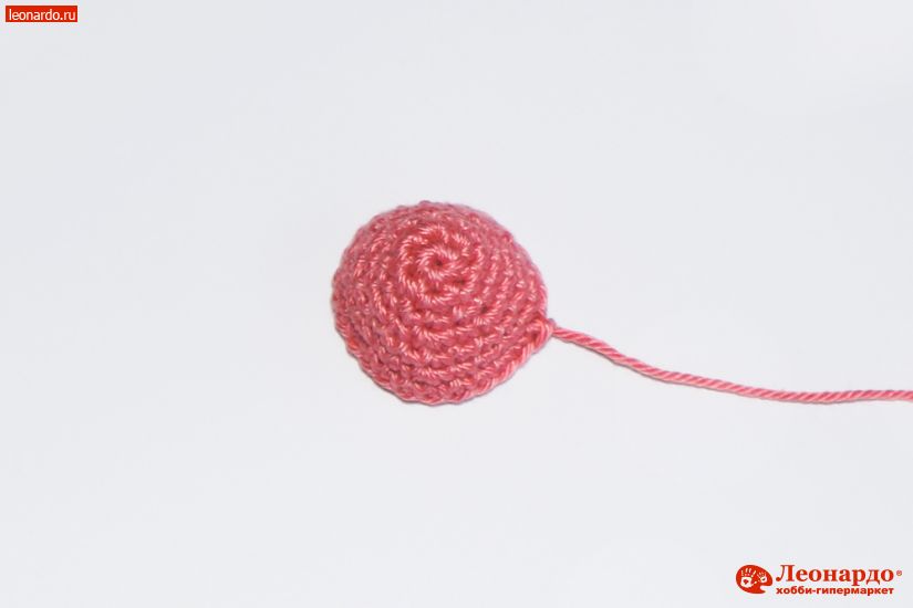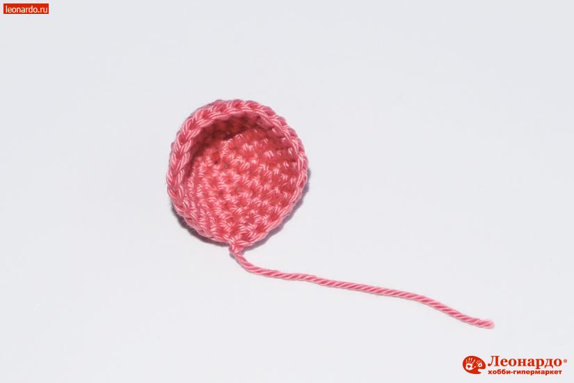 Провязываем 1СС, нить отрезаем, оставляем хвостик нити примерно 25 см длиной для пришивания клюва к голове.