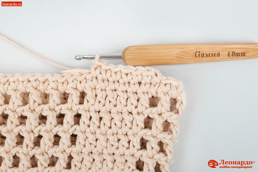 9. Снова чередуем ССН и ВП пока не получится 14 ССН. Далее снова 5 ССН подряд. Аналогично вяжем до конца ряда.
