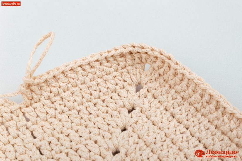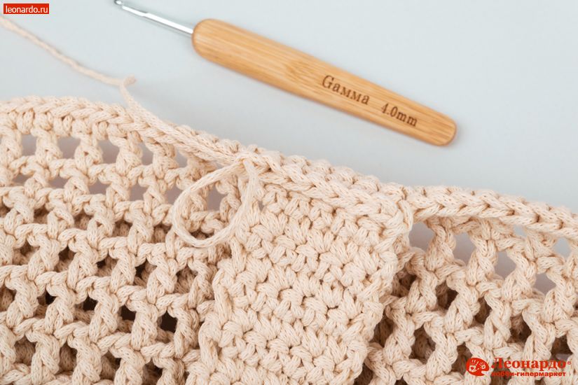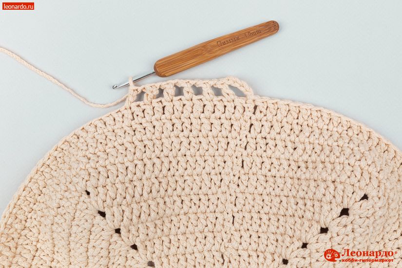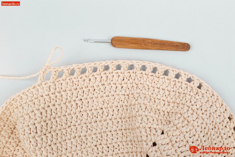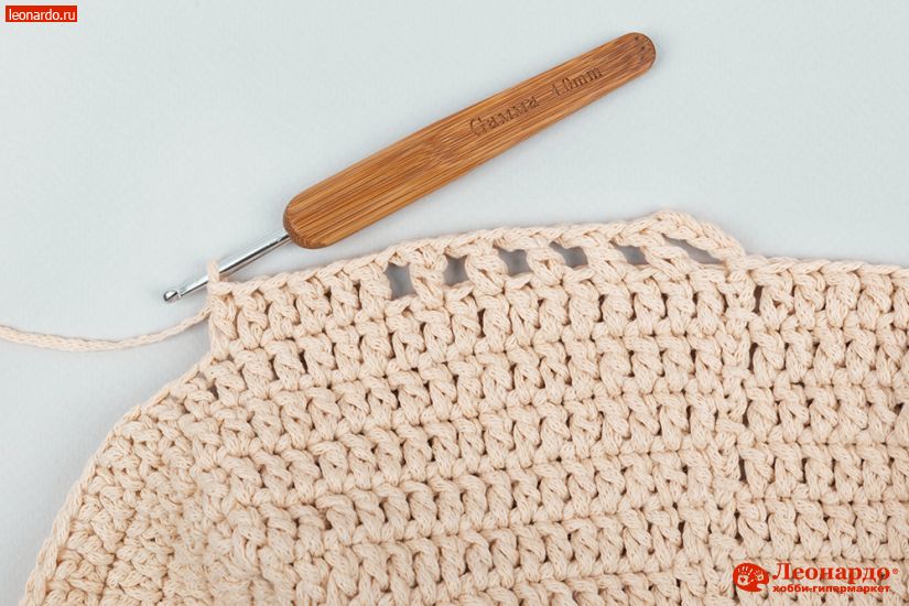 10. 14-30 ряды вяжем без изменений. 31-й ряд вяжем СБН (столбики без накида). Обрезаем нить, соединяем ряд.