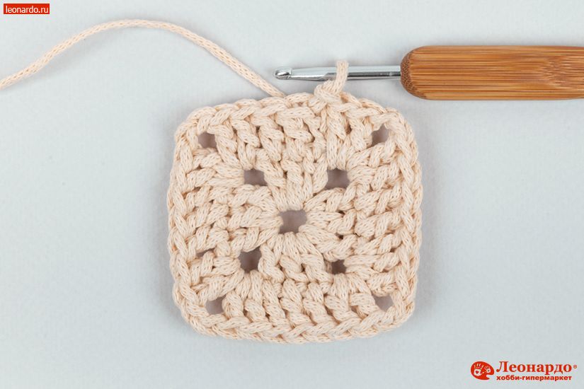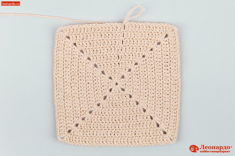 4. Продолжаем вязать квадрат по схеме. Всего у нас должно получится 8 рядов (20х20 см).