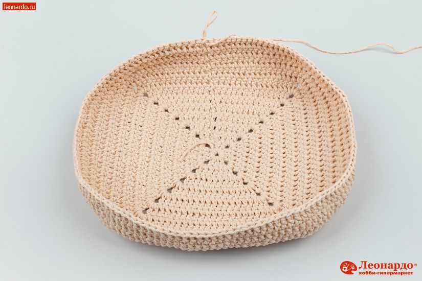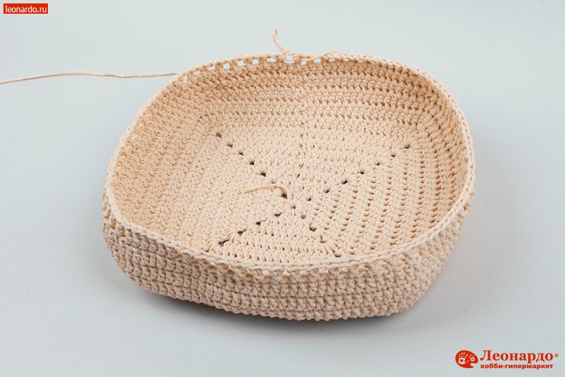 5. Приступаем к стенкам. 9й ряд. ССН по кругу без прибавок. Под ВП в углах вяжем по 2 ССН.