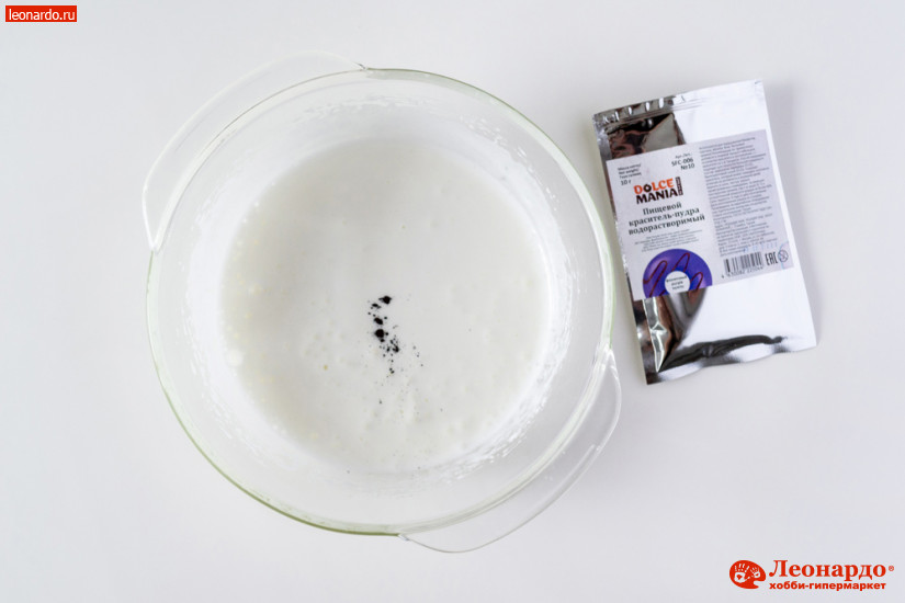 3. Добавляем во взбитую меренгу краситель согласно инструкции и перемешиваем.