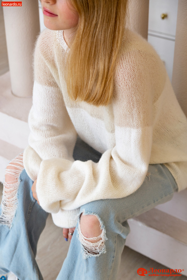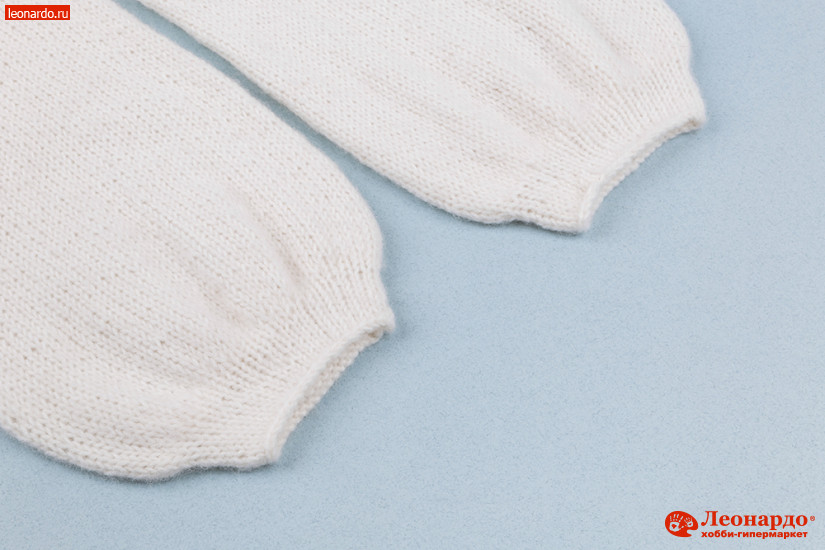 4. Продолжаем вязание кокетки до длины 23 см. Спинка 100 петель, перед 90 петель, рукава по 67 петель. Затем меняем нить на Alpina ALPACA POLLO (01 БЕЛЫЙ) и переходим на круговые спицы GAMMA (арт. MKN) диаметром 4,0 мм и с длиной лески 100 см. Продолжаем вязать реглан до длины 32 см.