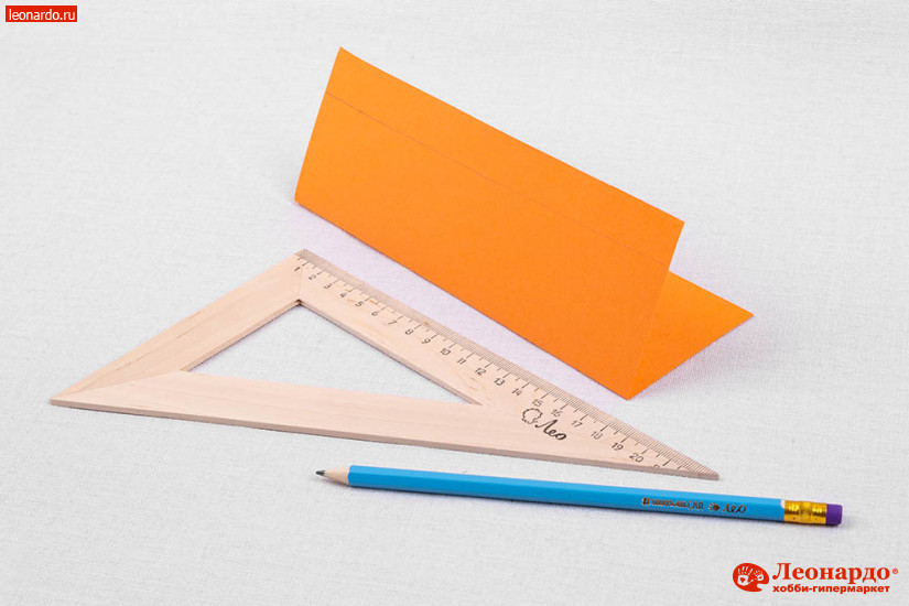 2. Половину листа оранжевой бумаги складываем пополам вдоль. Карандашом проводим вспомогательную линию от края на уровне 2 см.