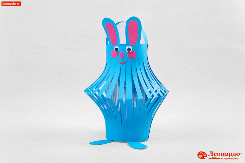 15. Из голубой и розовой бумаги склеиваем длинноухого Зайца.