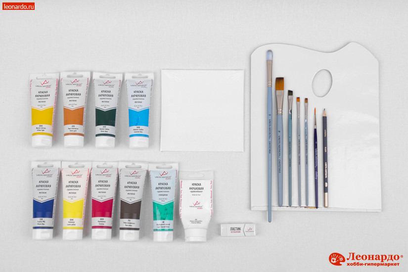 3. Краска акриловая матовая VISTA-ARTISTA Studio, арт. VAAM-75 (№204 лимонная, №206 жёлтая светлая, №213 охра золотистая, №309 карминовая, №503 небесно-голубая, №518 голубая ФЦ, №615 зелёная тёмная, №711 умбра натуральная)