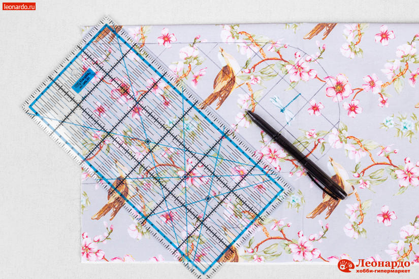 2. При помощи линейки для пэчворка GAMMA (арт. QRL-01) наносим сетку для стежки на обе детали: линии идут с интервалом 4 см под углом 90 градусов.