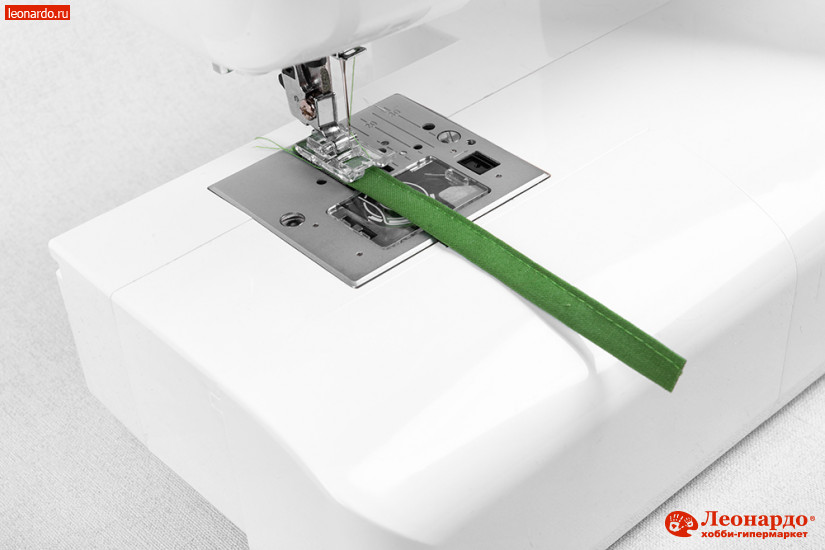 7. В конце шва обратите внимание, что на стороне, противоположной большому пальцу, нужно увести строчку влево примерно на 1 см от края.