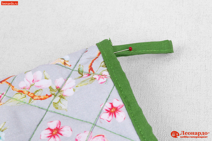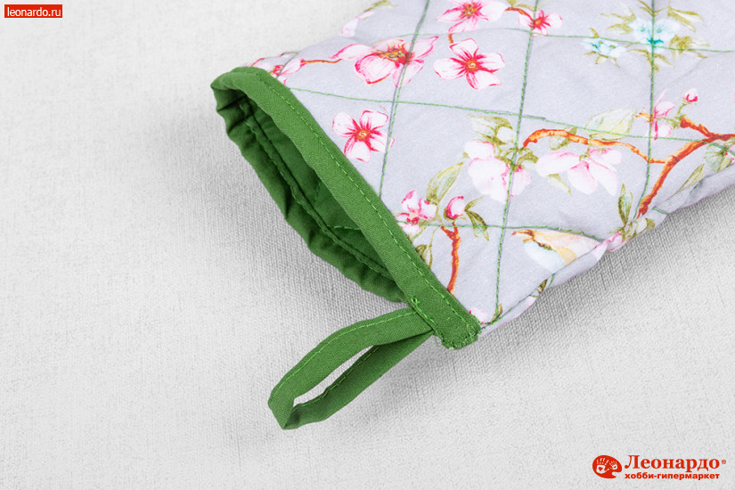 Крупный весенне-летний цветочный рисунок идеально подходит для изготовления кухонного комплекта. В нашем мастер-классе подробно рассмотрим, как сшить прихватку-рукавичку со стеганым рисунком и контрастным зеленым кантом. Прихватка – простая и незаменимая на кухне вещь, а стильная прихватка ещё и яркий аксессуар!
