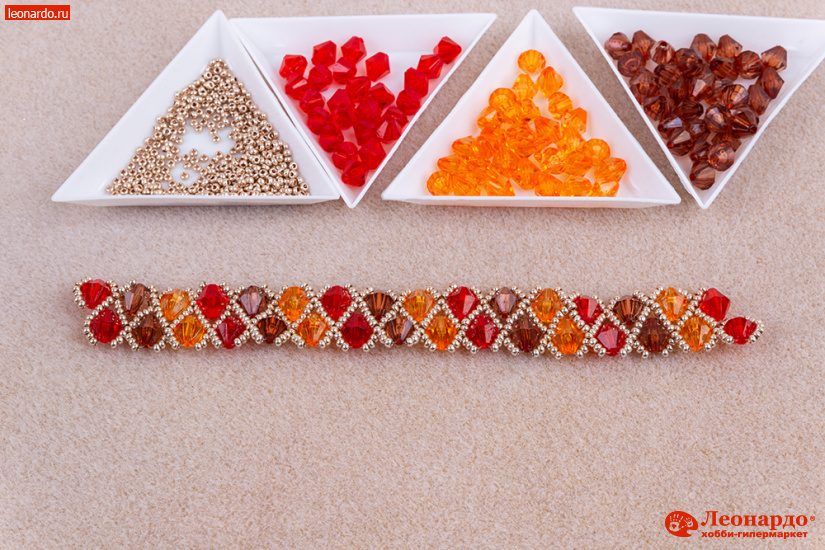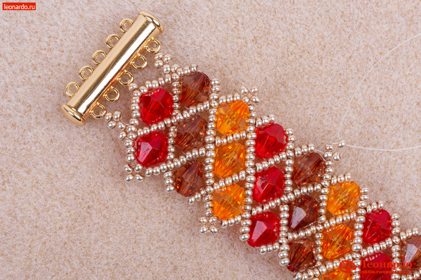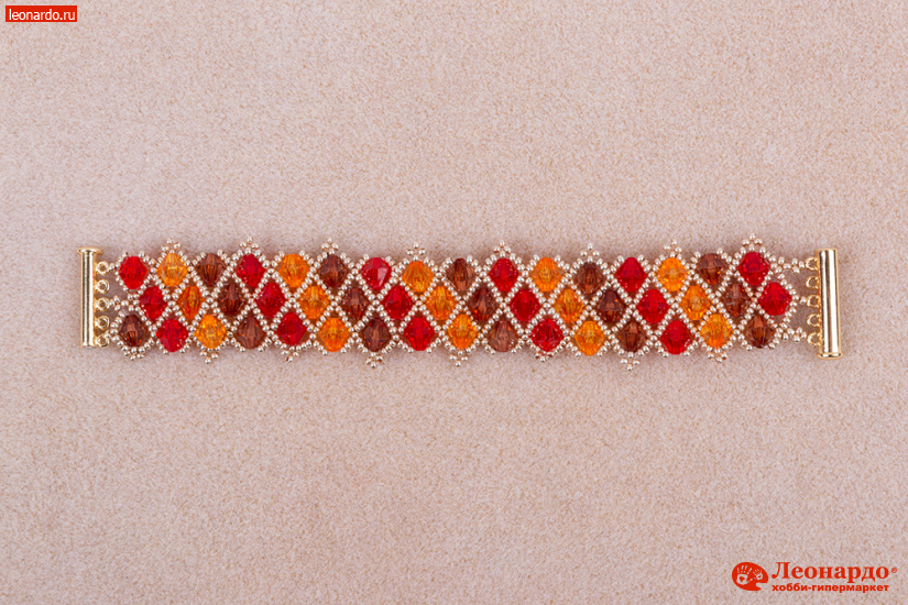 Браслет состоит из разноцветных бусин, напоминающих осеннюю листву, а золотой бисер приковывает взгляды и вызывает восхищение своим блеском и яркостью. Он идеально гармонирует с осенней природой, подчеркивая ее красоту и утонченность. Красота и изысканность этого украшения подчеркнет вашу женственность и стиль, делая вас еще привлекательнее в глазах окружающих.