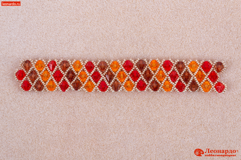 5. Продолжаем плетение по схеме. Бусины по цвету чередуем.