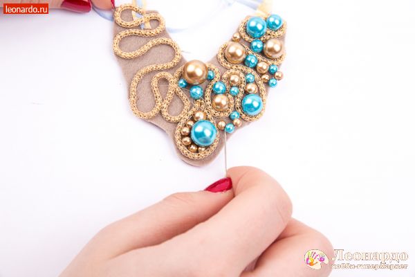 Это нарядное колье насыщенного бирюзового цвета напоминает о пенящихся морских волнах, отражающим яркие солнечные лучи, шуме прибоя, солёных брызгах… Оно создаст настроение Вам и всем, кто Вас увидит. Сделайте себе такой подарок своими руками!