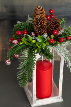 Скоро самый волшебный праздник в году, и каждый из нас хочет добавить в свой дом немного сказки и уюта. Представьте: приглушенный свет свечи, мягко пробивающийся сквозь стекло, а вокруг – буйство зимней природы, воплощенное в ярких красках и натуральных текстурах. В нашем мастер-классе мы покажем, как с помощью декоративных искусственных хвойных веток с яркими ягодами и обычных шишек – превратить деревянную заготовку в виде фонаря в изысканную и праздничную новогоднюю композицию.