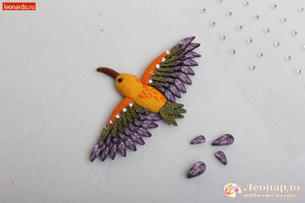 Полимерная глина открывает дорогу в удивительный мир творчества – безграничный, чарующий. У этого материала неимоверное количество возможностей! Ими обязательно надо пользоваться и, конечно, создавать настоящие шедевры, например – вот такую чудесную брошку-птичку. Тропическая, яркая, сверкающая стразами птичка замечательно украсит вашу сумочку или пальто, выделит среди толпы и подчеркнет ваш неповторимый стиль.