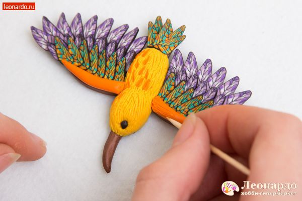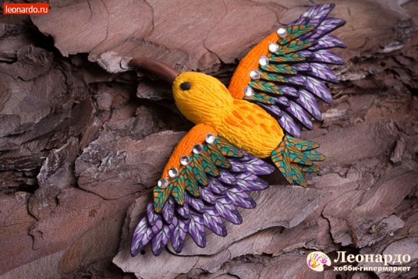 Полимерная глина открывает дорогу в удивительный мир творчества – безграничный, чарующий. У этого материала неимоверное количество возможностей! Ими обязательно надо пользоваться и, конечно, создавать настоящие шедевры, например – вот такую чудесную брошку-птичку. Тропическая, яркая, сверкающая стразами птичка замечательно украсит вашу сумочку или пальто, выделит среди толпы и подчеркнет ваш неповторимый стиль.