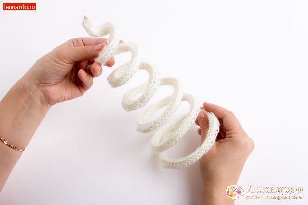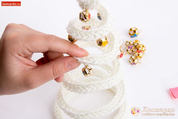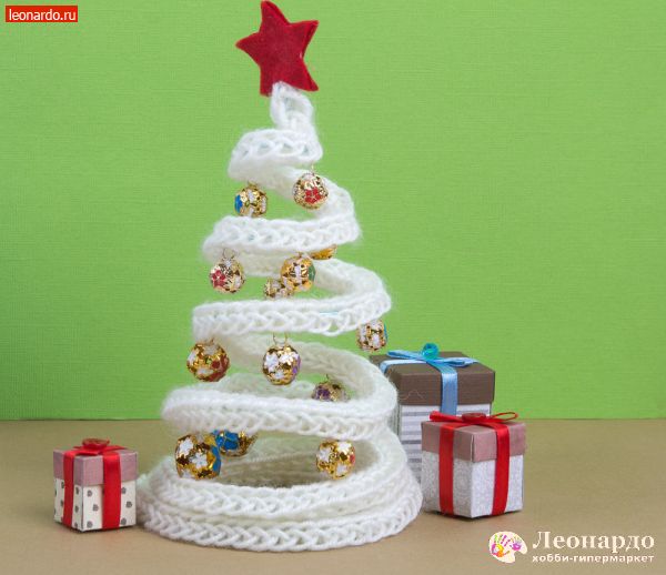 Новогодние праздники все ближе и ближе! И хочется как можно интереснее украсить дом, добавить необычных деталей, оригинальных аксессуаров – чего-то нового и непривычного. Один из вариантов – удивительная елочка из связанного вручную шнура с большой алой звездой на макушке. Благодаря хитро спрятанной внутри шнура проволоке создается впечатление, словно спиралевидная елочка парит в воздухе. А золотистые бубенчики еще больше усиливают эффект настоящего волшебства. Сделать такую елочку несложно, зато удивленные друзья и близкие по достоинству оценят ваши рукодельные таланты.