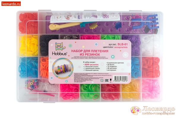 - Набор для плетения из резинок «Hobbius» с акс., арт.: SLB-01 6000 шт ассорти