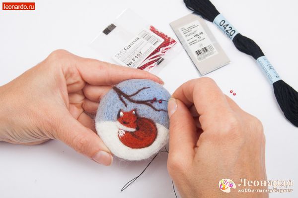Зимняя брошь с ярким живописным рисунком, выполненная в технике сухого валяния, не останется незамеченной – ведь это настоящее миниатюрное произведение искусства! С помощью сухого валяния можно создавать целые картины, будто написанные кистью художника. Рыжая лисичка, уютно спящая на снегу, напомнит о том, что и зимой можно быть яркой, ни на кого не похожей, со своим собственным характером!