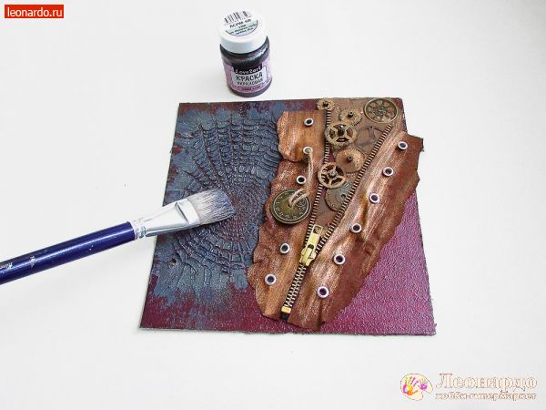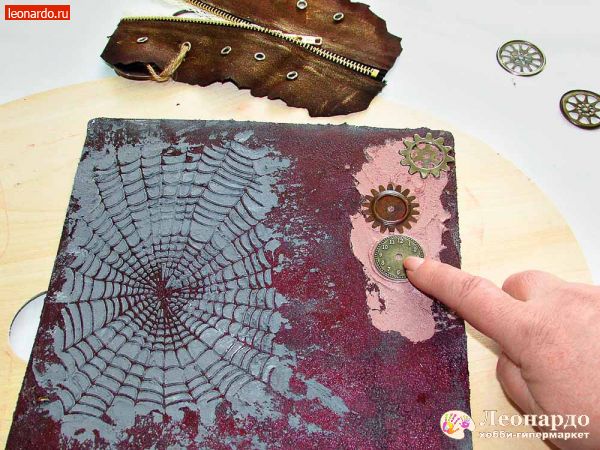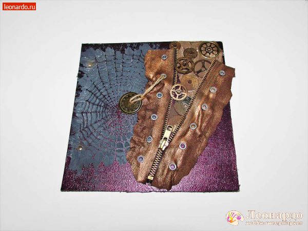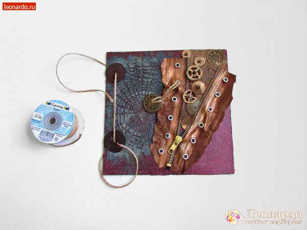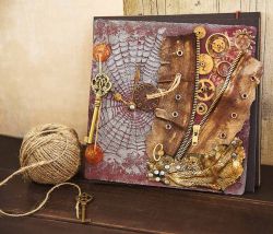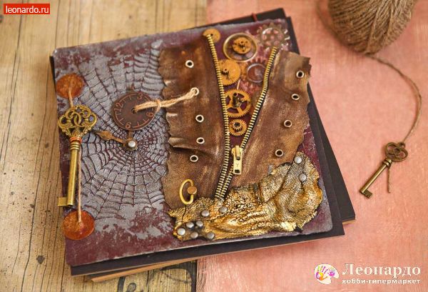 В последние годы растет число поклонников стиля стимпанк — направления, моделирующего утопическую цивилизацию викторианской эпохи, в которой господствуют механические и паровые машины. Характерными элементами этого стиля являются такие материалы, как кожа, медь, части механизмов, шестеренки и многое другое. Изучив пошаговый мастер-класс по декупажу, вы с легкостью создадите оригинальную обложку для скрапальбома. Такая необычная обложка станет замечательным подарком для всех любителей футуристического стиля стимпанк.