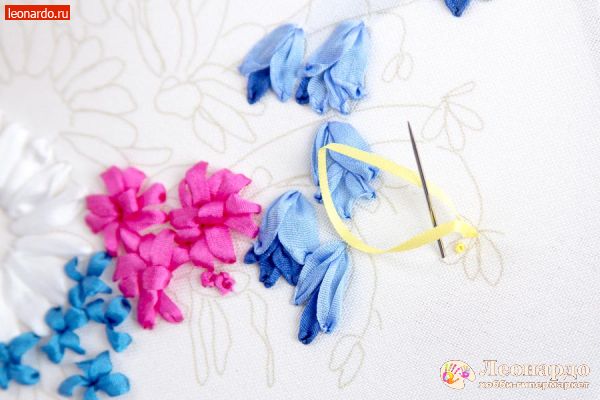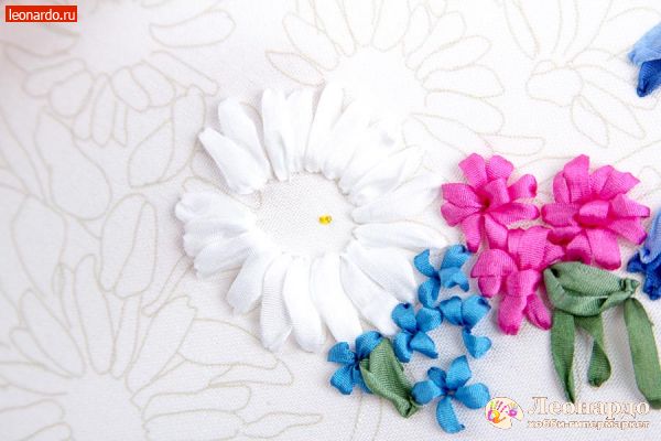 Картины, вышитые лентами – это настоящее произведение искусства! Объемные и словно сходящие с полотен в реальный мир, они способны очаровать любого. Их создание – кропотливое и трудоемкое занятие, но даже начинающей мастерице не составит труда научиться такому рукоделию. Главное – время, трудолюбие и воображение. Пошаговый мастер-класс по созданию великолепного натюрморта поможет вам разобраться со всеми этапами процесса. Атласные ленты заиграют всеми оттенками летних полевых цветов и великолепно передадут солнечное настроение. Такая яркая и живая картина украсит любой интерьер или же станет замечательным подарком.