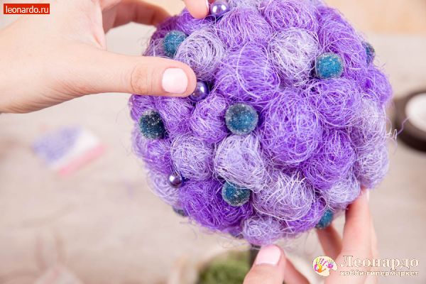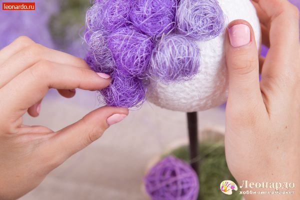 Топиарий – один из самых древних видов искусства ландшафтного дизайна. Самые первые топиарии появились еще во времена Римской империи! Кроме того, японский садик «Бонсай» – тоже один из представителей такого искусства. Со временем интерес к топиариям не пропал, сейчас топиарии – это замечательные интерьерные украшения, небольшие по размерам и очень уютные. Кроме того, их называют «деревцами счастья», поскольку считается, что они приносят удачу своему владельцу. Изучив пошаговый мастер-класс с подробным описанием, вы с легкостью изготовите для себя или в подарок близкому человеку это яркое интерьерное украшение. Натуральные материалы и мягкие сиреневые тона непременно настроят на позитивный лад и подарят спокойное и умиротворенное настроение.