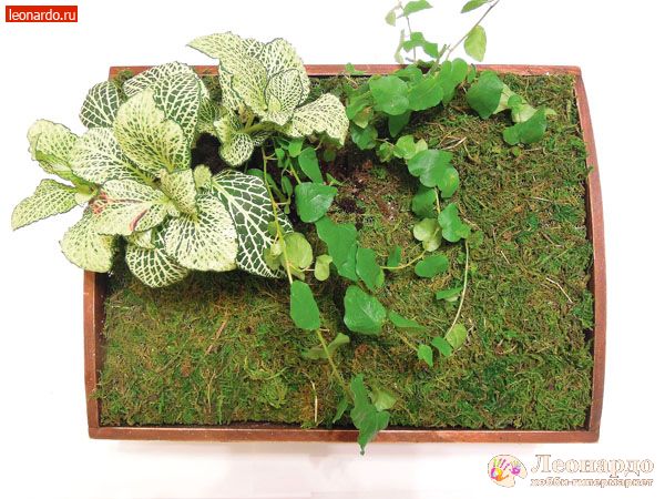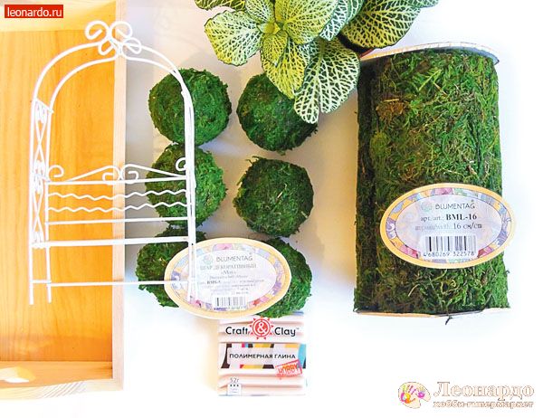 В последнее время стало особенно популярно создание необычных флористических композиций – мини-пейзажей, высаженных в виде небольшого садика. Сюда помещают миниатюрные сорта различных декоративных растений, которые не слишком сильно разрастаются — небольшие папоротники, эписции, изящный аир злаковый. Смотрятся такие флористические композиции лаконично и строго, но в то же время дают простор для фантазии, а также дарят место для медитации. Пошаговый мастер-класс поможет вам не запутаться в процессе работы. Натуральный мох, декоративные шарики, камушки из полимерной глины и, конечно, настоящие растения, которые будут радовать вас и ваших близких. Такое интерьерное украшение никого не оставит равнодушным!