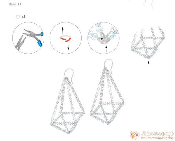 Невероятная изысканность, красота и шарм – все это бусины Swarovski. Украшения, созданные с их помощью, всегда кажутся необыкновенно роскошными, а также идеально подходят «для особенных случаев». Чтобы у вас тоже появился такой аксессуар, необязательно тратить много денег – достаточно приложить немного времени и усилий, изучив подробный мастер-класс с пошаговым описанием. Бусинка за бусинкой вы создадите сияющие, словно снежные кристаллы, серьги. Оригинальная геометрическая форма выгодно выделит их среди других подобных украшений. Ощутите себя самой неотразимой!