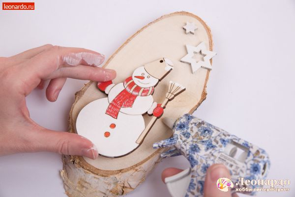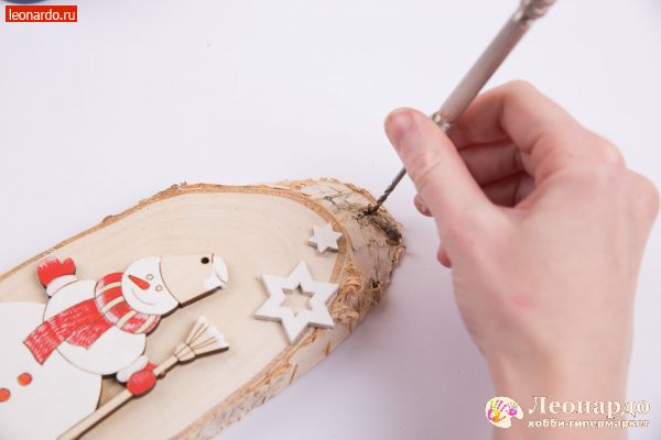 В преддверии праздника наряжают не только елку, но оформляют интерьер различными новогодними украшениями. Для новогоднего декора детской комнаты предлагаем использовать украшения, которые созданы своими руками. Изучив простой и очень доступный мастер-класс, маленькие творцы, а вместе с ними и взрослые, с легкостью изготовят замечательное эко-панно с веселым снеговичком. Для создания праздничной атмосферы в доме, можно украсить живую веточку ели праздничным украшением, тем самым настроив детей на ожидание чуда в новогоднюю ночь. В процессе будут использоваться только безопасные материалы – натуральное дерево, а также деревянные бусинки и ленточки. Ну а самая увлекательная часть – это покраска композиции акриловыми красками. Создавать новогодние украшения вместе со всей семьей – это здорово и очень весело!