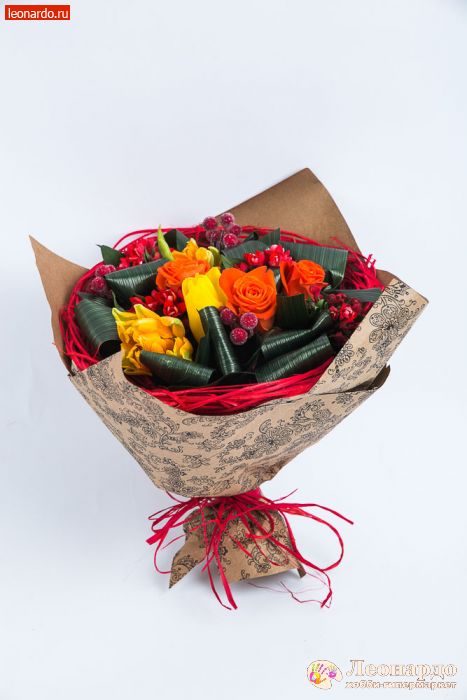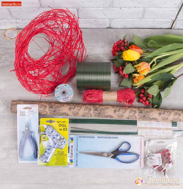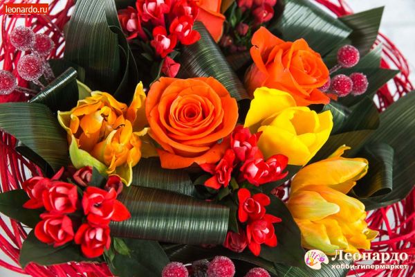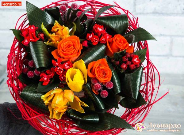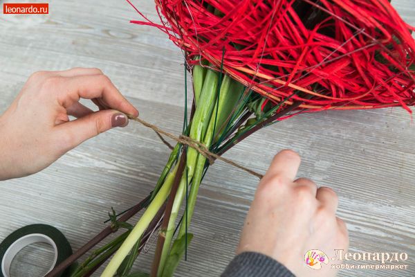 Чем можно дополнить цветочный букет, чтобы превратить его из обыденного в яркий и нетривиальный? Подробно разобранный мастер-класс поможет вам с легкостью решить эту задачу! В качестве необычного флористического компонента будет использована лента аспидистра, прикрепленная к проволоке, а также декоративные засахаренные ягодки и рафия. Вам потребуется лишь немного времени, воображения и, конечно, любви к творчеству. А букет, который в итоге получится, станет чудесным подарком для близкого человека.