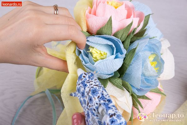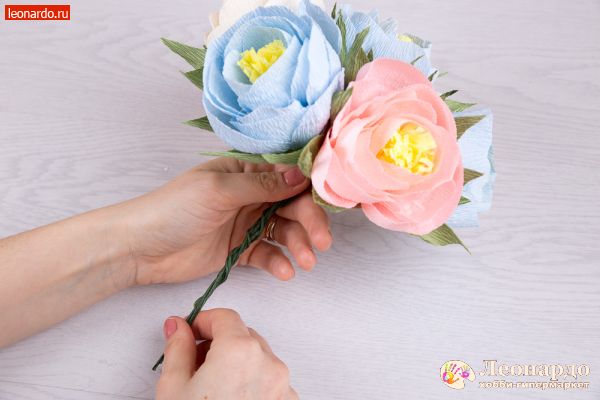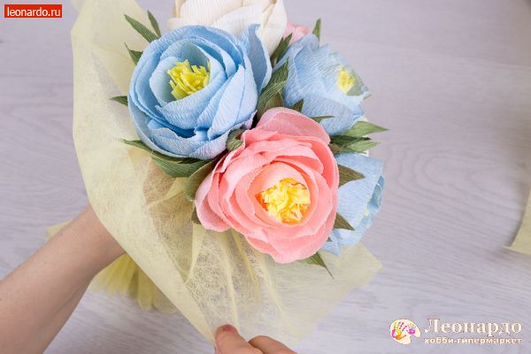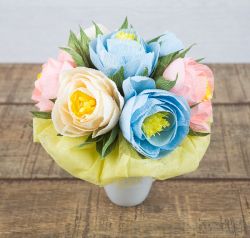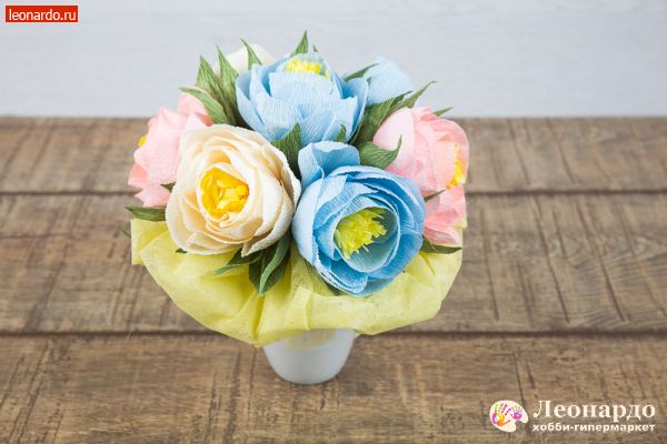 Не нужно ждать особого повода, чтобы украсить свой дом цветами. Невероятно пластичная и податливая гофробумага нежнейших оттенков позволяет сделать чудесный букет в любое время года. И такой букет никогда не завянет! А навык изготовления бумажных цветов пригодится вам и в оформлении подарков, и в создании аксессуаров, и в декоре одежды и интерьера. Попробуйте сделать свой первый букет и вы влюбитесь в этот волшебный скульптурный материал!