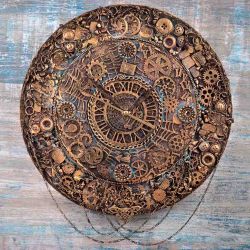 Изящный подсвечник, созданный на стыке двух техник – чеканки и плетения из проволоки.