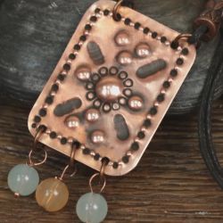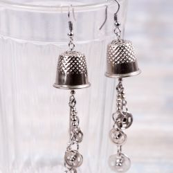 Роскошные серьги, созданные в технике совмещения чеканки по металлу и плетения из проволоки.