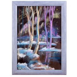 Сказочный новогодний пейзаж, выполненный в эко-стиле на деревянных заготовках.
