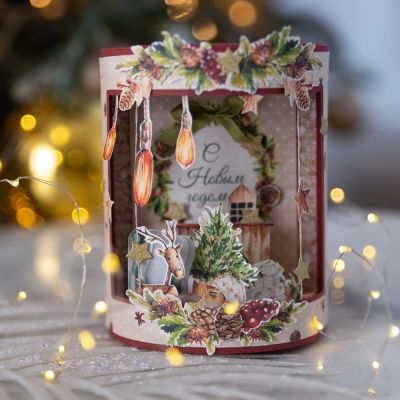 Помните, как в детстве мы делали своими руками сюрпризы для близких на праздники? А как любили рассматривать объемные детские книги, состоящие из множества слоёв? В данном мастер-классе мы покажем этапы создания композиции в виде полукруглой коробочки. Лицевая часть – новогодний интерьер, а сзади располагается кармашек для сюрприза!
