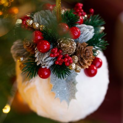 Мастерим декоративный шар к новому году из плюша и материалов для флористики.