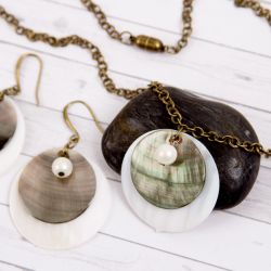 Изысканный и лаконичный комплект украшений с бусинами из натуральных ракушек.