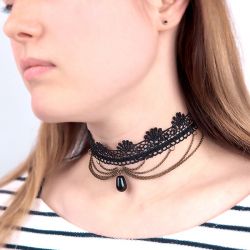 Изысканное и стильное ожерелье, созданное из бусин Сваровски и ювелирной ленты.