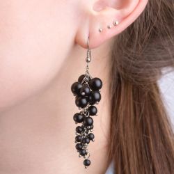 Невероятно красивое украшение – серьги в виде грозди самой полезной летней ягодки.