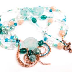 Легкие бусы с кулоном – нежность изумрудных оттенков и благородство меди.