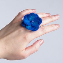Изумительное украшение – колечко с большим и ярким цветком из шерсти.