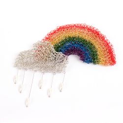 Яркая брошка-радуга, связанная из проволоки, подарит вам солнечное и позитивное настроение.