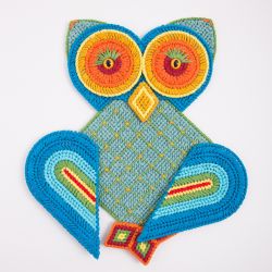 Яркая совушка, вышитая на пластиковой канве – добрая волшебница для комнаты малыша.