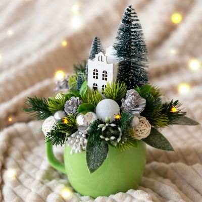 Собираем флористический новогодний декор на кухню в маленькой чашке.