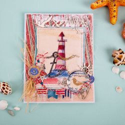 Настоящий шедевр, изготовленный в технике скрапбукинг! Эта пронизанная морским ветром открытка напомнит о самых теплых моментах летнего отпуска.