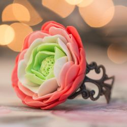 Необыкновенно красивое колечко с ярким цветком из полимерной глины.