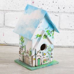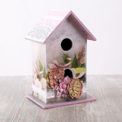 Чудесный весенний домик-скворечник, задекорированный с помощью техники декупаж.
