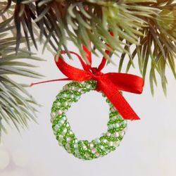 Традиционный новогодний веночек из яркого бисера, который придаст вашей елочке еще больше сказочности.